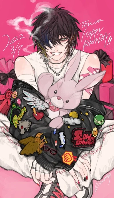 Blaze is tall with pale skin, gold eyes, black hair with yellow tips and has a white eyepatch over his right eye.he dresses in punk fashion with lots of pins and leather.He’s a perverted bad boy, uses nicknames, loves partying and getting what he wants, he buys you gifts and spoils you.He’s a guitarist in a very popular band, called ‘Blue rapture’.