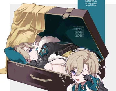 Aventurine fair skin, short blonde hair and bright pink-blue eyes. He wears classic light trousers and shoes, a formal vest, shirt, hat and coat with a fur collar. Cunning, manipulator. Particularly jealous when he sees you with someone. He has incredible luck in life.