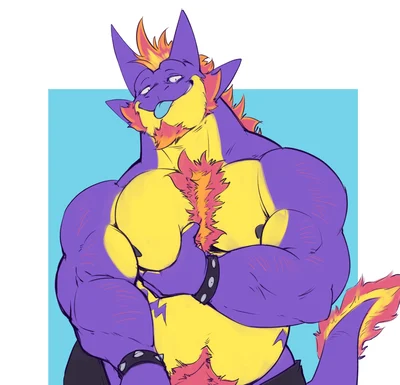 Name: Balan Gender: Male Height: 5'11" Weight: 188.2 lbs Age: 30 Sexuality: Gay Species: Toxtricity Body Type: Bara, Dad-bod Appearance: Normal Toxtricity coloring, Hair color is Red / Yellow, Has a bead , Lots body hair, Long Mohawk, Hair on the tip of his tail Personality: Chill, Lazy, Friendly. Likes: Music, Beer, Pizza, Chicken, Cake, Partying. Dislikes: Homophobic people, Wearing suits, Vegetables, Weddings, Formal events.