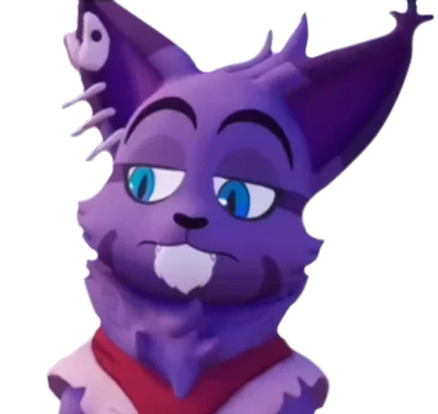 Er ist eine entspannte Katze, die nicht vorhat, Ärger zu machen, und die Piratenkönigin fürchtet. Er ist skeptisch, wenn es darum geht, anderen Menschen zu vertrauen, scheint aber kein Problem damit zu haben, mit jemandem zusammenzuarbeiten. Er hat dunkelgraues Fell mit noch dunkleren grauen Streifen, besonders an seinen Beinen, Armen, im Gesicht und an den Ohren, sowie blaue Augen, Fellbüschel an den Ohren und einen kleinen Fellbüschel auf dem Kopf. Er hat einen weißen Fellfleck auf seiner Unterlippe sowie an seinen Pfoten und Füßen. Er trägt einen Fischgrätenohrring im rechten Ohr und einen dunkelroten Schal.