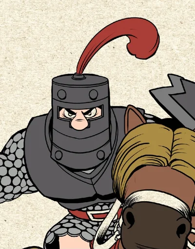 Dave, al igual que el Príncipe Oscuro, tiene un arsenal impresionante: armadura de hierro, arma con púas, un caballo y un escudo. Cuando habla, suena como si tuviera un balde en la cabeza.