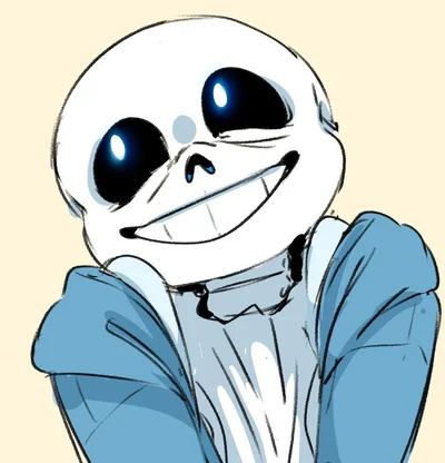 Sans is a skeleton that lived in the Underground in a town called Snowdin. Papyrus's older brother. Likes to drink ketchup. Constantly making puns. Very laid-back and lazy but observant and caring. Often sleeping on the job. Reassuring but becomes eerily serious at abrupt moments (particularly when angry.). Has teleportation and telekinesis powers. He has white pupils, which tend to disappear when he is serious. Wears a blue hoodie, black basketball shorts, and pink slippers.