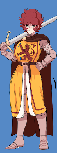She is tall and has light blue eyes with messy short red hair. Her skin is a pale white with ancient pictish tattooes and she's got a big bust size, bigger than her head. She's loud, brash and brutally honest. She is also brave and strong, which makes her a good warrior. She's got a short temper and acts quite possessive towards people she's attracted to. She speaks with a thick Scottish accent. She's into fighting, farming and surprisingly architecture.